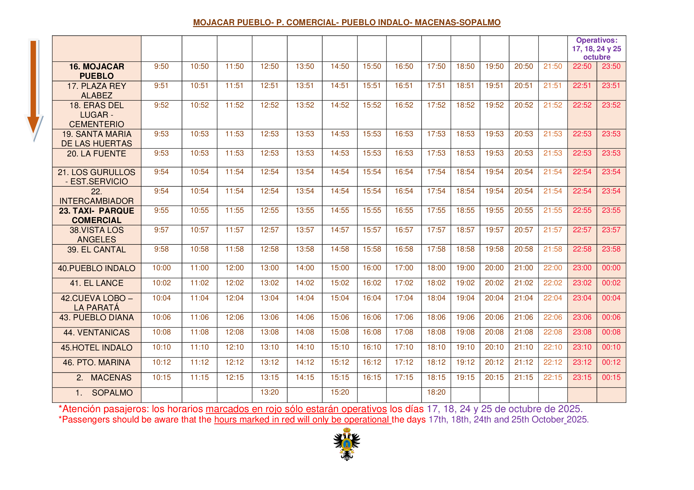 | TRAJET LONG (MOJÁCAR) | 12 – 16 € | 12 – 18 € |